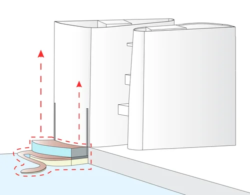 Community space for the proposal is designated to Boston Climate Resiliency Office. The structure is an outdoor “room” that floats reflecting the change in water levels within the harbor.